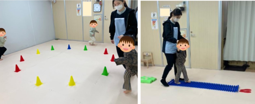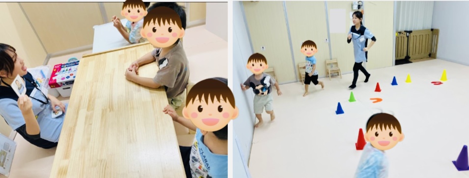 🎶主な療育内容🎶 ・サーキット:全身運動、順番を待つ ・ペープサート:集中力 ・自由遊び:コミュニケーション、社会性 🎶活動の様子🎶 今日はペアサーキットをしました🎵行ったルートをくるりと反対向きになって、来たルートを帰ることに挑戦。ジャンプでは、両足跳び、開いて着地をする、という別々の動きを続けて行う事を頑張りました! ペープサートでは「はたらくくるま」を見ました。音楽に合わせて出てくる車を見て、歌いながら目でしっかり追う事ができていました。