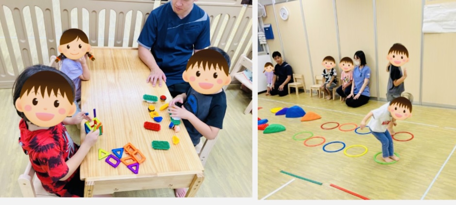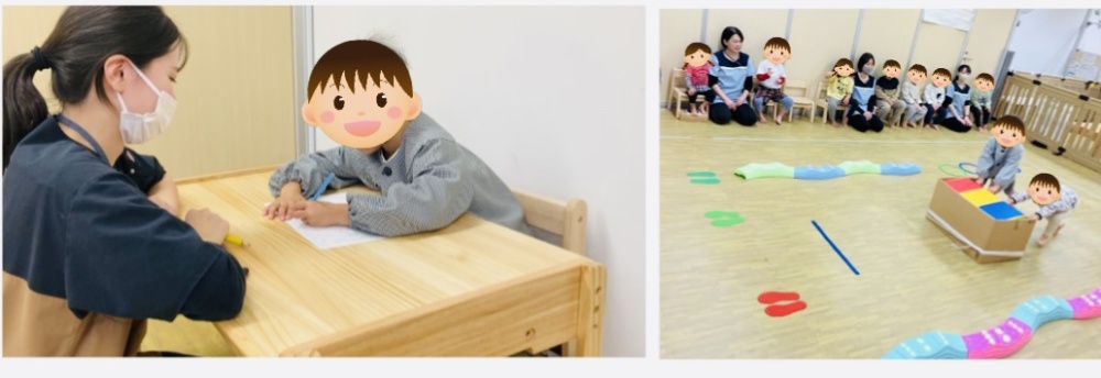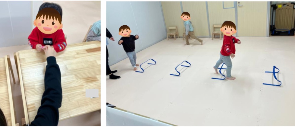 🎶主な療育内容🎶 ・サーキット:全身運動、順番を待つ ・お尻おにごっこ:全身運動 ・専門的支援(個別課題) ・自由遊び:コミュニケーション、社会性 ・絵本の読み聞かせ:集中力、注意力 🎶活動の様子🎶 今日のサーキットは内容が盛りだくさんでした。まずは、バランスストーンから落ちないように渡り、リングの上を5回ジャンプで進みます。次に細いラインの上をはみ出さないように歩き、最後はハイハイしてゴールまで頑張ってすすみました。自由遊びでは、ブロックで車か船を作っていました。