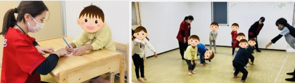 ⭐️主な療育内容⭐️ ・クッキング「クレープづくり」 ・ペアサーキット ・大根抜き ・プリント学習 ・おしりおにごっこ ・自由遊び ・リズム体操 ・歌 ⭐️活動の様子⭐️ クレープづくりでは、バナナをカットしたり生クリームを絞ったり、好きなようにデコレーションしていきました🍰ポッキーは2本までやチョコレートはスプーンでかけるという約束を守り、友達の順番を待って進めることができました!好きなものを全部のせたら「おいしそう~!」と言ってみんなで大きな声でいただきますをして食べました☺作っていく過程も楽しみながらみんなで笑顔で進めていく事ができました💛 大根抜きでは、はじめは小さなチームで行い、2回目は全員で手をつないで行いました。ルールを説明し、みんなで協力して手を離さないようにつなぐことが大切だと伝え、始める前にみんなで「エイエイオー!」と団結力を高めて挑みました!抜かれそうになるとみんなで声を掛け合い力を入れて踏ん張っていました☺抜かれたお友達は抜かれていないお友達に対して「がんばれー!」と応援し、最後まであきらめずにみんなで取り組みました♪ プリント学習では、お手本の〇や△の形の位置を見ながら同じ位置に丁寧に模写していきました。難しい部分は先生に声をかけることができ、ヒントを与えると自分で考えながら取り組んでいました!最後まで集中して取り組んでいました👏