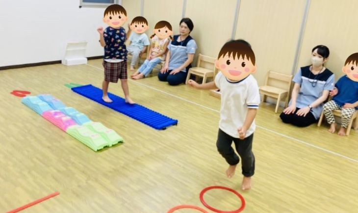 🎶主な療育内容🎶 ・サーキット:全身運動、順番を待つ ・自由遊び:コミュニケーション、社会性 ・リズム体操:全身運動、模倣 ・ペープサート:集中力 ・お尻鬼ごっこ:手足の協調運動 ・プラネタリウム:リラックス ・専門支援(個別課題) 🎶活動の様子🎶 本日はサーキットとペープサートを行いました。 サーキットでは初めて魚釣りを行いました。 竿と魚の距離を上手に調整して魚を釣ることができました。 ペープサートでは歌に合わせ様々なイラストを見ながら、元気よく歌う事ができました。