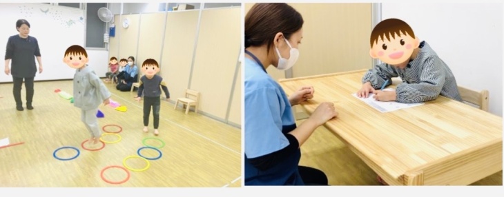 運動では、動体視力やルール理解、バランス、協調などを目的として矢印ゲームとペアサーキットを行いました。矢印ゲームでは、先生の出す矢印の向きを見てジャンプやしゃがむ、左右のコーンにタッチをしていきました。目で見て瞬時に体を動かすよう意識しだんだんスピードを上げて行いました!先生をよく見て体を動かすことができており、慣れてくると速いスピードで行うことができていました☺個別課題では、パズルと正しい文章について行いました。パズルではお手本を見て正しい配置を確認し、集中して取り組むことができていました👏繰り返すうちにスピードも速くなりすぐに仕上げることができました☺