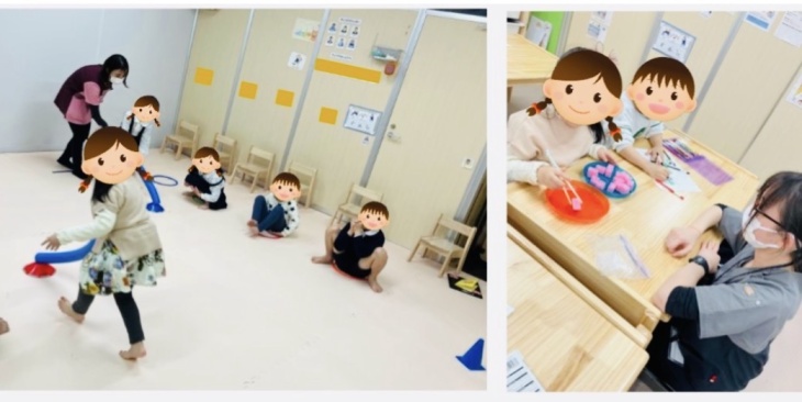 節分は過ぎましたが、太陽のリハげんきではまだまだ鬼退治をおこなっています👹サーキットで様々な高さのストーンやハードルでジャンプした後には、鬼退治が待っています。大きな赤鬼、小さな青鬼がいますが、新聞紙のボールを投げてうまく当たると鬼がたおれる仕組みになっています。鬼が倒れても倒れなくても、一生懸命にボ-ㇽを投げて鬼退治する姿はとてもかっこよかったです!!