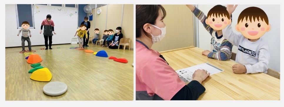 節分は過ぎましたが、太陽のリハげんきではまだまだ鬼退治をおこなっています👹サーキットで様々な高さのストーンやハードルでジャンプした後には、鬼退治が待っています。大きな赤鬼、小さな青鬼がいますが、新聞紙のボールを投げてうまく当たると鬼がたおれる仕組みになっています。鬼が倒れても倒れなくても、一生懸命にボ-ㇽを投げて鬼退治する姿はとてもかっこよかったです!!