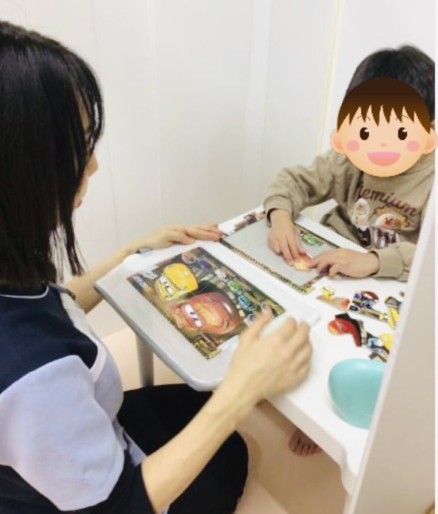 運動では、動体視力やルール理解、バランス、協調などを目的として矢印ゲームとペアサーキットを行いました。矢印ゲームでは、先生の出す矢印の向きを見てジャンプやしゃがむ、左右のコーンにタッチをしていきました。目で見て瞬時に体を動かすよう意識しだんだんスピードを上げて行いました!先生をよく見て体を動かすことができており、慣れてくると速いスピードで行うことができていました☺個別課題では、パズルと正しい文章について行いました。パズルではお手本を見て正しい配置を確認し、集中して取り組むことができていました👏繰り返すうちにスピードも速くなりすぐに仕上げることができました☺